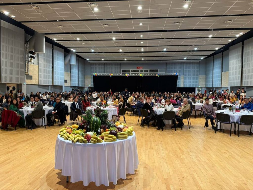 ភ្ញៀវកិត្តិយសទាំងអស់បានរីករាយជាមួយអាហារប៊ូហ្វេម្ហូបខ្មែរ ការជួបជុំសន្ទនា និងការរាំលេងកម្សាន្ត ប្រកបដោយបរិយាកាសសប្បាយរីករាយ និងកក់ក្តៅ។