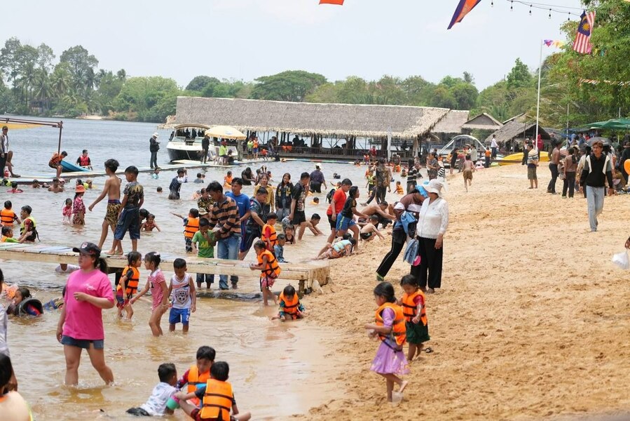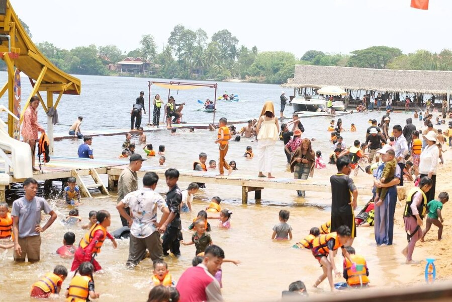 កំពត៖ ថ្ងៃទី២ នៃពិធីបុណ្យចូលឆ្នាំថ្មីប្រពៃណីជាតិខ្មែរ ភ្ញៀវទេសចរបាននាំគ្នាសម្រុកទៅកម្សាន្តនៅបណ្តុំតំបន់រមណីយដ្ឋានទឹកឈូច្រើន មានដូចជា ដួងទេ និងខ្សែរ៉ក ឧទ្យានដងព្រែកជាដើម ព្រោះទីតាំងទាំងនោះរៀបចំបានស្អាត មានបរិយាកាសត្រជាក់ អាចងូតទឹកលេង និងលេងកីឡាលើទឹកជាច្រើនប្រភេទ ដូចជាម៉ូតូទឹក កាយយ៉ាក់ ជិះខ្សែរ៉កឆ្លងព្រែកជាដើម។ ទាំងភ្ញៀវទេសចរណ៍ និងអ្នកផ្តល់សេវា ថាថ្ងៃទី២នៃបុណ្យចូលឆ្នាំ ភ្ញៀវសម្រុកមកលេងខេត្តកំពតច្រើនជាងថ្ងៃទី១។